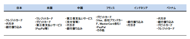 ECの決済手段は、各国の文化や通信環境、政府の方針などで全く異なる。海外ECを展開する際は、現状の決済手段だけでなく、今後急速に伸びそうな決済手段も含めて調査し、現地に適した海外ECを展開してほしい。
